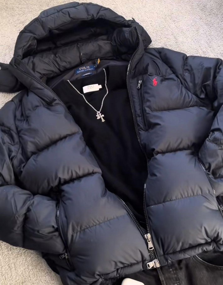 Mit einer hochwertigen Gänsedaunenfüllung (80/20) und wasserabweisendem Ripstop-Gewebe bietet dieser Mantel Wärme, Leichtigkeit und Schutz an kalten Tagen – ganz ohne Kompromisse beim Stil.